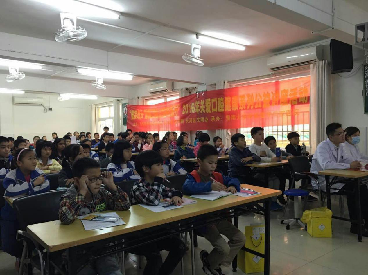 2016年初春伊始,穗华口腔医院开展“微笑口腔·健康口腔公益校园行”活动,由专业的口腔专家为岭南中英文小学的学生们进行关爱口腔健康系列公益讲座,旨在提高少年儿童对口腔保健的意识,从小养成良好的口腔卫生习惯。
