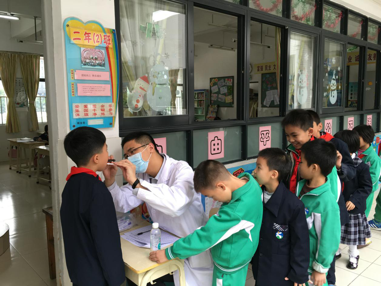 在讲座结束后,穗华口腔医师给孩子们提供免费的口腔检查,孩子们都排好队,配合医师的检查,从而了解自己的口腔健康情况,并听取医师的口腔改善方案。