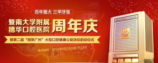 为了更好地服务市民群众,践行社会主义核心价值观,传递文明,共筑微笑广州,穗华口腔医院与暨南大学附属第一医院口腔科经共同研究决定,2016年再次依托“关爱好人”穗华口腔工作站开展惠民公益行动,将于6月18日上午9:30正式启动第二届“微笑广州·幸福天河”口腔健康公益活动。