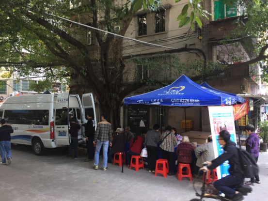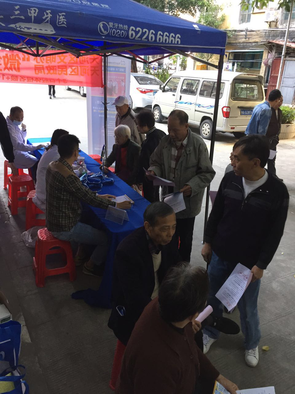 今日上午穗华口腔医院在天园街腰岗居委举办口腔健康义诊活动,活动中许多居民朋友表示事先知道今天有义诊,于是就过来参加了。此外,活动也吸引了路过的群众,受到热情服务的他们纷纷对义诊医生表示好评。