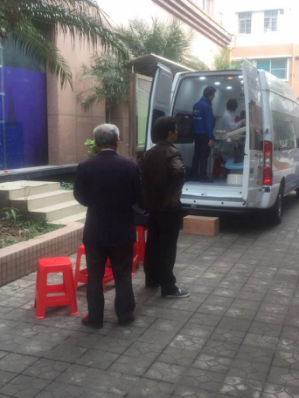 口腔检查车后面排队的居民