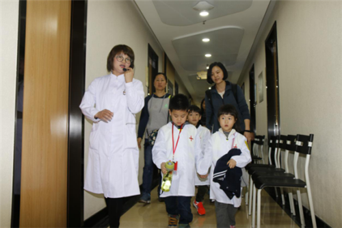 小朋友与家长参观医院