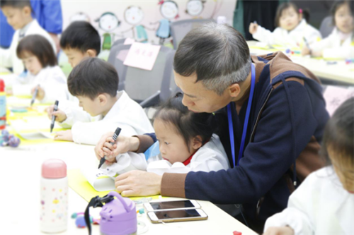 参观完毕,小朋友们回到课堂,开始手工绘画环节。美术老师和工作人员指导着家长和小朋友们如何进行制作手工和绘画,通过手工绘画的形式,让小朋友们对蛀牙有更深刻的理解。爸爸妈妈们也在一旁指导着小朋友,亲子互动充满温馨和欢乐。