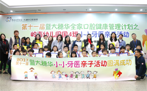 今天上午,第十一届“穗华口腔医院全家口腔健康管理计划之岭南幼儿园国4班小小牙医亲子活动”在穗华口腔医院成功举办。本次活动由穗华口腔医院联合岭南幼儿园联合举办,旨在提高家长与小朋友们的口腔健康管理意识,让大家认识到保护牙齿的重要性及如何进行预防保健,树立正确的爱牙护牙观。