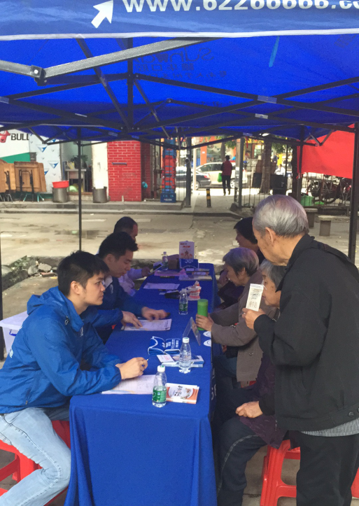参与活动的居民正在填写口腔检查表