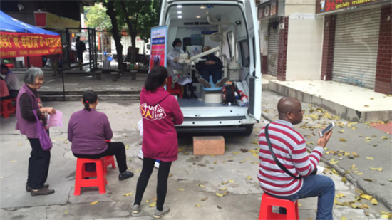 为了提高口腔检查的专业性和科学性,穗华口腔医院还充分利用流动型口腔体检车,让居民朋友们躺在牙椅上,进行更方便的检查。
