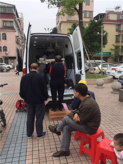 今日,穗华口腔医院开展天河长兴街长湴东社和西社联合义诊,为东西两社的居民街坊提供口腔健康义诊公益服务。活动现场热闹非凡,医生诚挚的服务颇受居民朋友的好评。