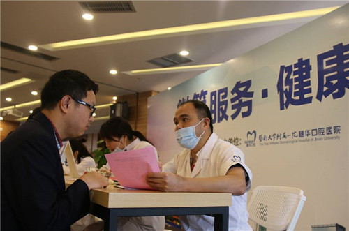 穗华口腔医院医生给公务人员检查口腔