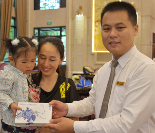 上午10点,天悦花园的家长和小朋友们陆续来到销售中心进行签到,很多爸爸带着小朋友在签到处旁的留影区拍照留念。