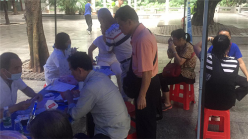 今天上午九点,穗华口腔医院口腔义诊团队来到越秀区北京街都府社区,为附近的居民朋友开展口腔健康义诊活动,不仅免费为街坊居民检查口腔问题,还热心积极为大家科普口腔保健知识,学会保护口腔健康。