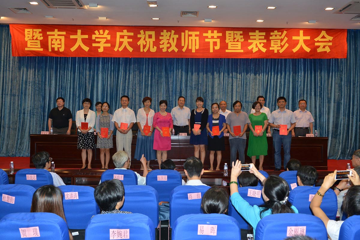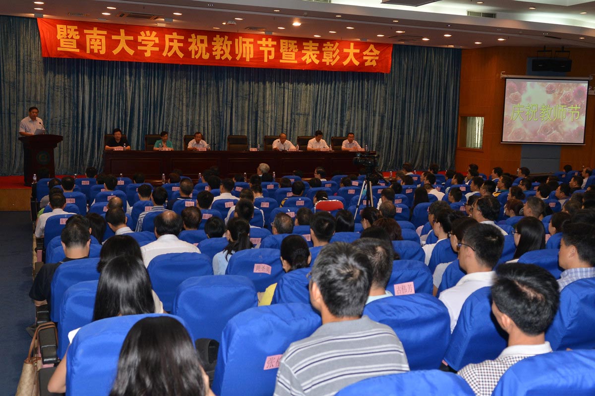 9月10日上午,暨南大学在曾宪梓科学馆国际会议厅召开庆祝教师节暨表彰大会。领导胡军、蒋述卓、刘洁生、林如鹏、饶敏、张荣华、叶文才出席。会议由刘洁生副校长主持,300余名获奖教师代表、教职工代表以及学生代表参会。