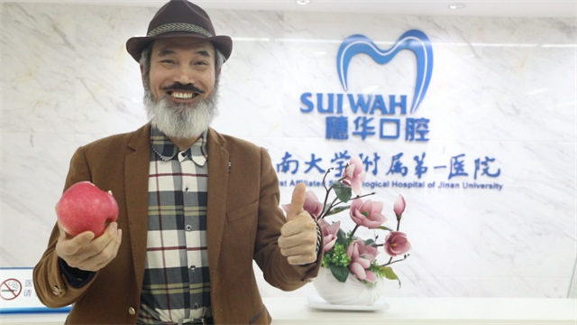 资深演员廖兴全,快要“一望无牙”之际,慕名找到穗华口腔医院种牙,全程舒适无痛,速度也快,让廖老非常满意。如今,廖老也能轻松嚼烂许多硬的食物,吃得好,精气神足,之后陆续接拍了不少影视剧。为此,廖老才抽出时间,想把剩下的缺牙也种上!