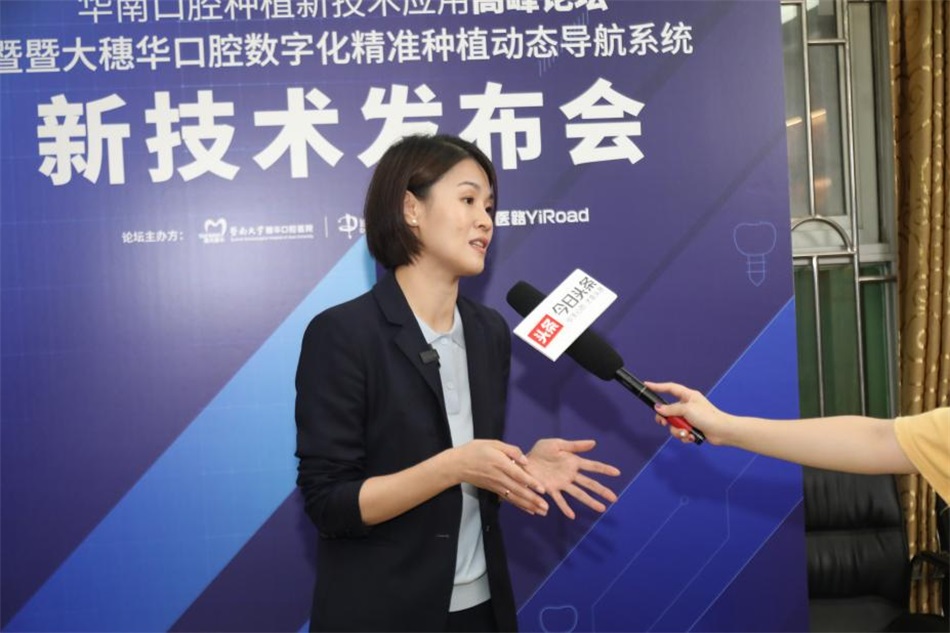 迪凯尔医疗范丽丹总监接受采访时表示:“我们与穗华口腔医院在临床、科研等方面,展开了全方位的合作。提升了临床医生应用精准种植动态导航技术的精准度,真正的惠及到了广大百姓。”