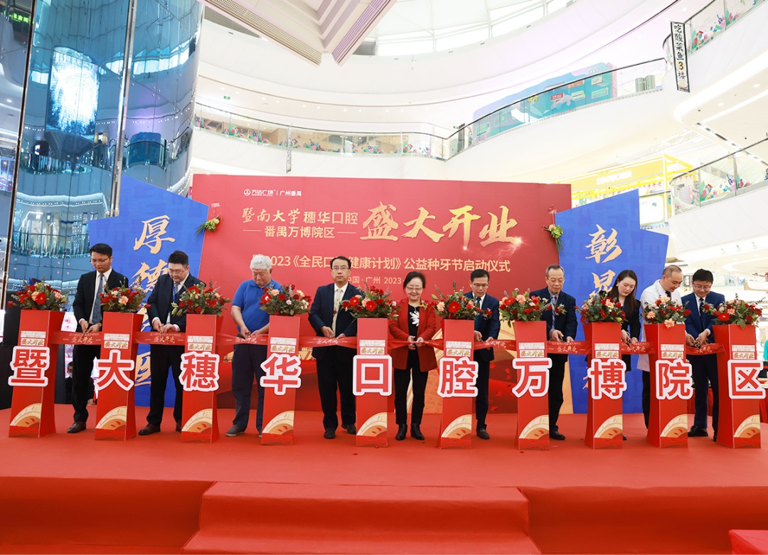 中华口腔医学会副会长、广东省口腔医学会名誉会长凌均棨女士,广州亚运会口号撰写者、书法协会主席乔平先生,穗华口腔医院总院长赖仁发先生,暨南⼤学穗华⼝腔医院副院长孔卫东先生、穗华口腔荔湾院区院长肖世芳女士及穗华口腔番禺万博院区院长张涛先生共同出席开业活动。