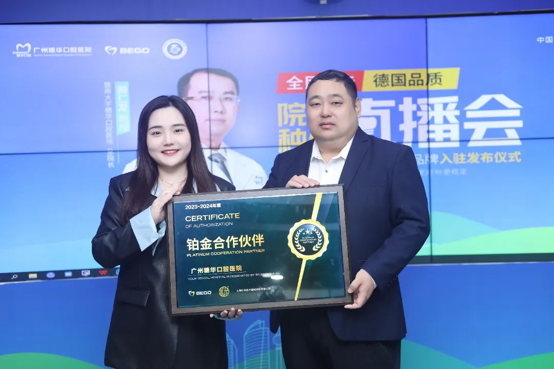 德国 BEGO授予穗华口腔“铂金合作伙伴”荣誉牌匾