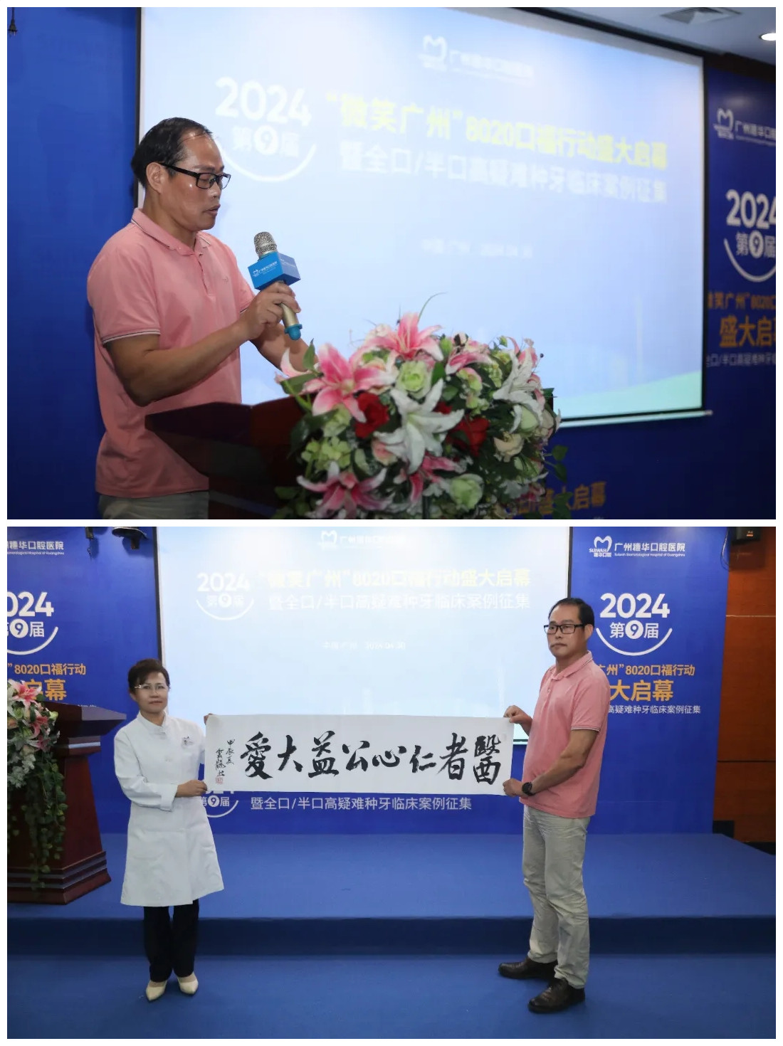 “感动广东”十大人物袁亚华先生讲述自身种牙故事,并赠送墨宝一副以示感谢
