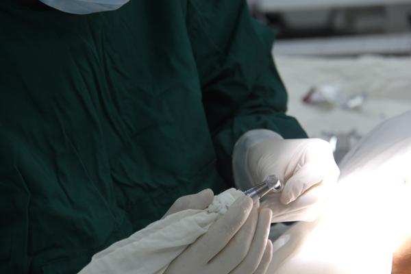 医生为郑阿姨准备种植体