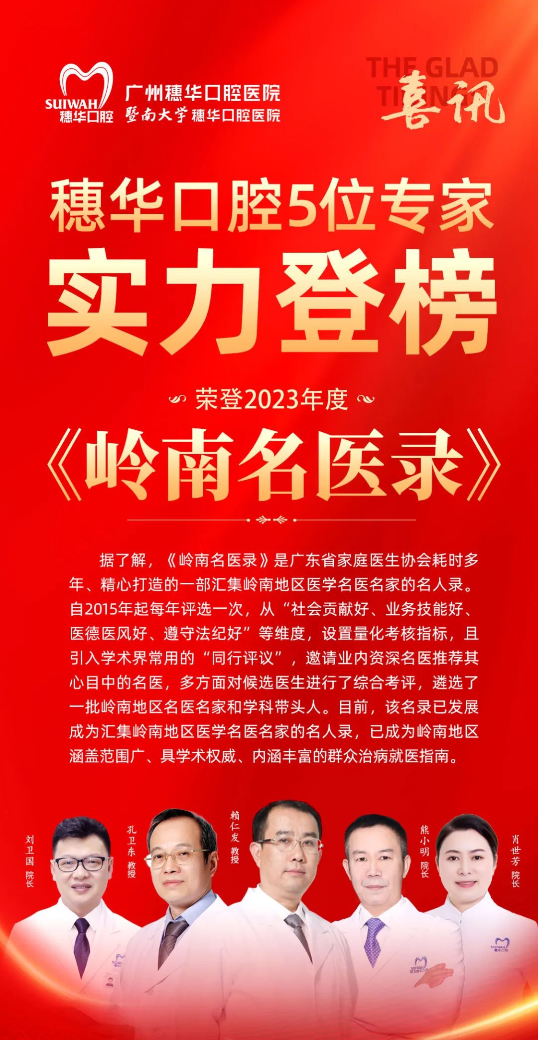 喜讯!穗华口腔5位专家荣登2023年度《岭南名医录